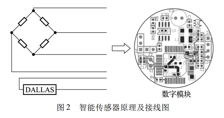 將模擬應變式傳感器經過組橋后直接將電橋的電壓模擬信號接入單片機 CS5530 的模擬輸入端,通過 CS5530的A/D 轉換器將電壓信號轉換成數字信號, 單片機對時鐘電路、復位電路、電源電路、串行通訊模塊、存儲模塊進行控制,通過編程處理后按照一定的格式將數據通過 RS485 串行通訊接口輸出。采用DALLAS2401半導體芯片。該芯片在工廠生產時,刻入經檢測的64位注冊碼(8位家族碼+48位序列碼+8位CRC校驗碼),因此可以保證沒有任何兩個器件的注冊碼是相同的。采用低成本 TSOC 表面貼封裝,方便裝在傳感器插頭或接線腔中。原理圖如圖2所示。