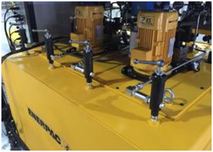 (2) 同時可以通過外部管路連接后用其中一臺電動泵為四個液壓油缸供油;