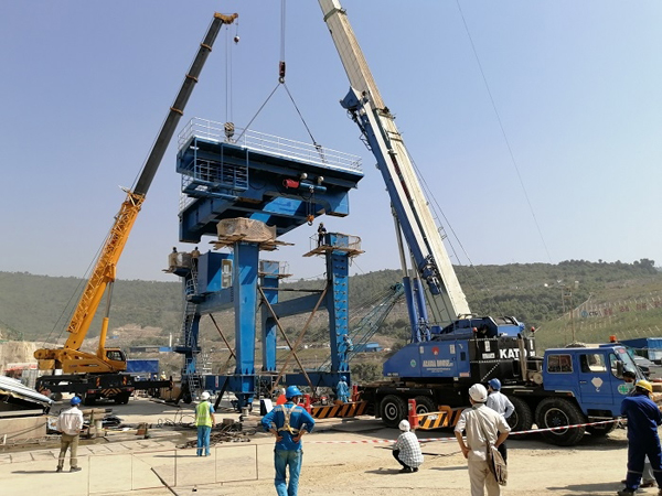 卡洛特尾水單向門機大梁整體吊裝順利就位