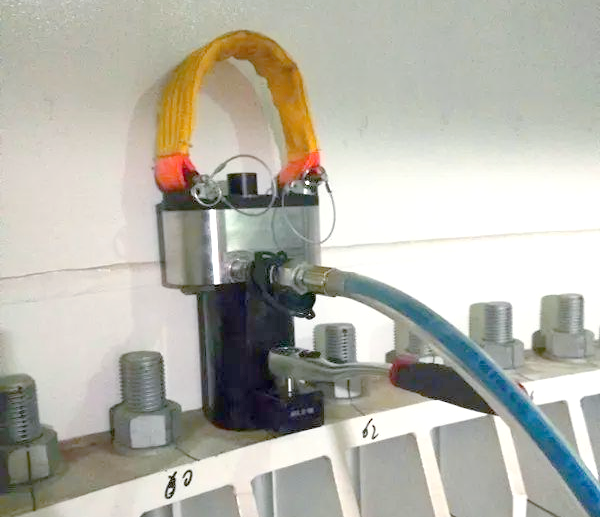 液壓拉伸器通過泵站壓力表實現精確的定值緊固,同步分流閥的設計使得一個泵站能同時驅動多個液壓拉伸器對多個螺栓進行同步拉伸,從而確保所有螺栓同時達到預定的載荷值。