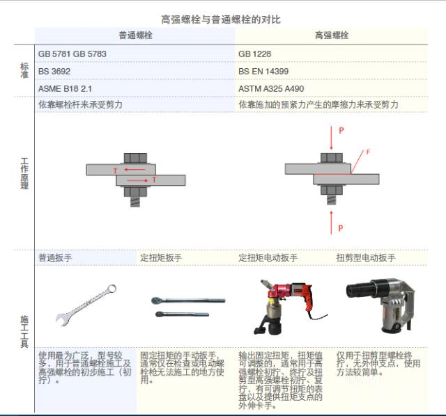 普通螺栓和高強螺栓由于其設計的受力原理不同,其在施工檢驗方法上有極大的區別。